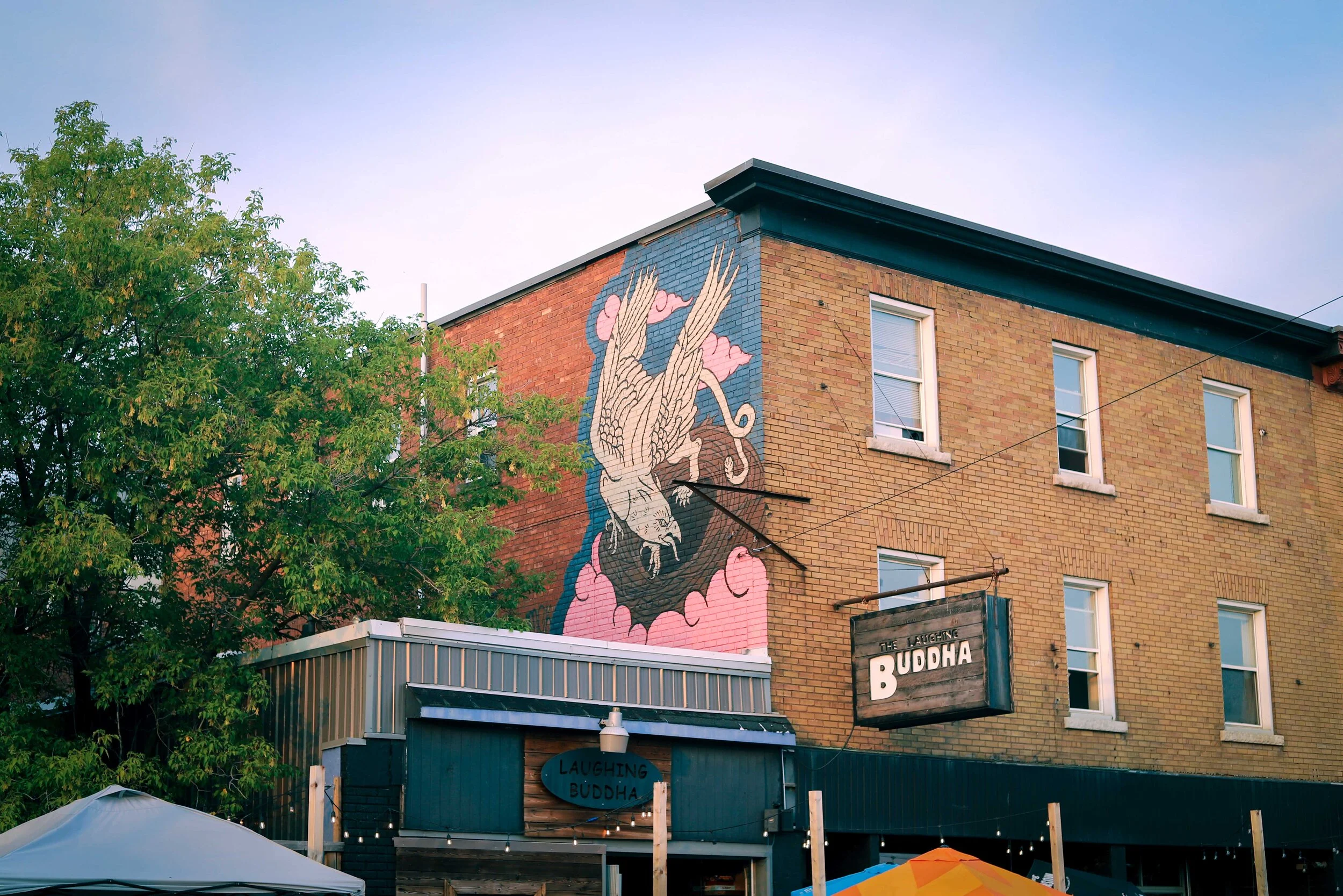 Sarah's mural focuses on the guardian griffin associated with gold and treasure. The griffin is a legendary creature with the body, tail, and back legs of a lion; the head and wings of an eagle. The guardian griffin has appeared throughout history and culture, and can be found living in places where rich minerals are found.