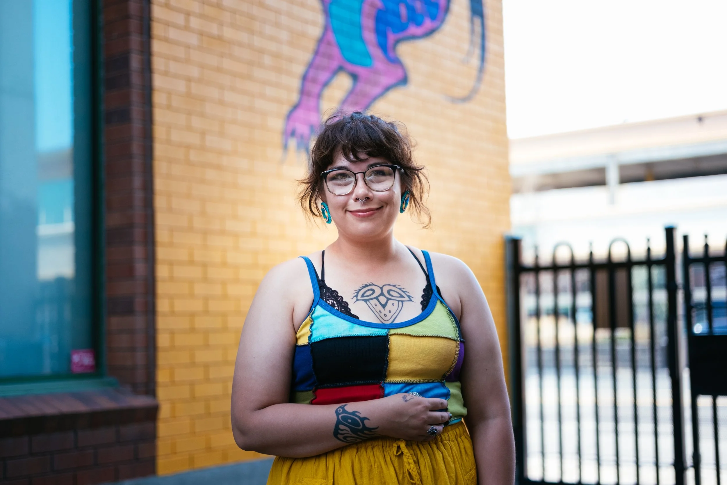 Art instructor, muralist, and project coordinator, Raven Debassige blends bold colour with her cultural values and perspective. A Sudbury-based artist of mkwa (bear) clan with roots in M’Chigeeng, she channels spirit, symbolism, and stories into her energetic and playful painted works.